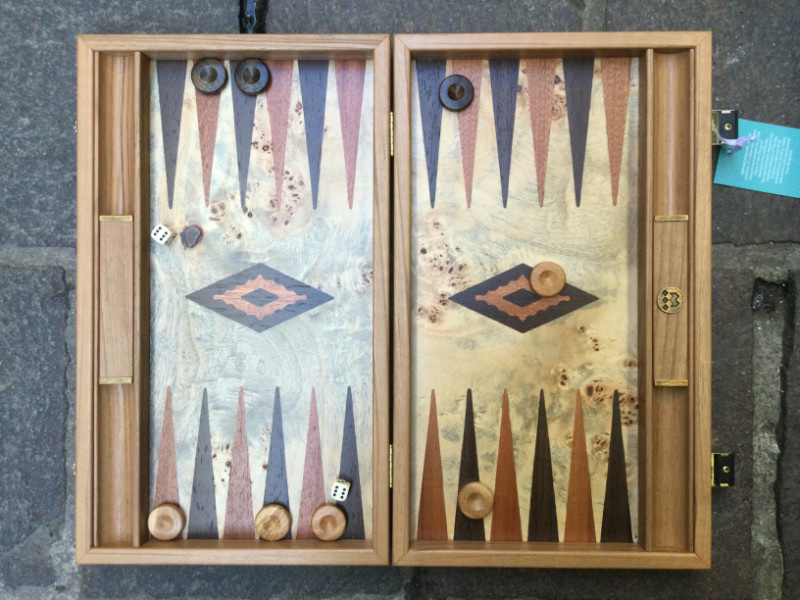 Backgammon, Lupo Wurzelholz Furnier, Points Wenge & Eiche, mit 30 Acryl - Perlmutt Spielsteine, 4 6-Seitige Würfel und 1 Dopplerwürfel, Qualität, Spielgefühl und Haptik wie gewohnt, das Allerfeinste von Manopoulos. Lesen Sie mehr