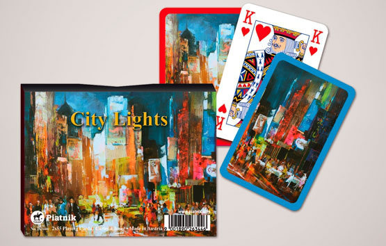 Doppelspiel von Piatnik Rückseite gestaltet, Vorderseite moderner Standard mit 4 Eckzeichen, 2 x 55 Spielkarten, 6 Joker, Kartengrösse 58 x 89 mm