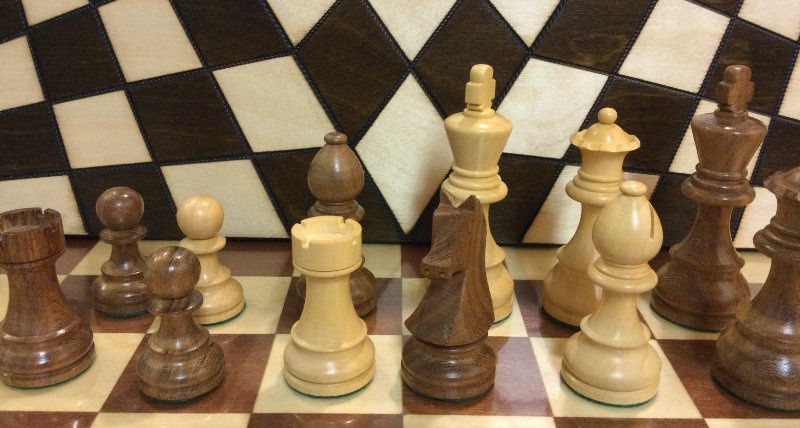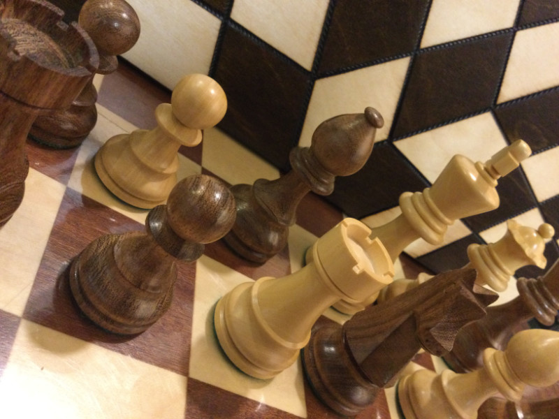 Sehr schön gearbeitetes Schachfiguren Set, “German Knight” Design, Grösse 4" aus Akazie & Buxbaum, Figuren sind gewichtet und stehen somit sehr stabil auf dem Brett, hochwertig