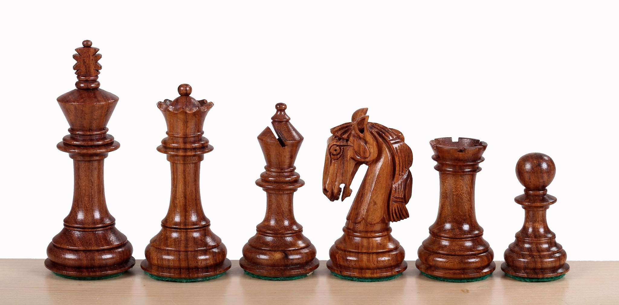 Schachfiguren Set, kolumbianischer Stil, 4 Zoll Figuren gewichtet, Holz: Akazie/Buxbaum, im Karton, je Farbe 16 Figuren, plus 2 Damen.