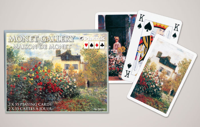 Doppelspiel von Piatnik Rückseite gestaltet, Vorderseite moderner Standard mit 4 Eckzeichen, 2 x 55 Spielkarten, 6 Joker, Kartengrösse 58 x 89 mm