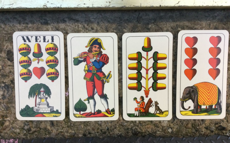 Salzburger Spielkarten, (“Jasskarten”) einfachdeutsches Bild in besonders stabiler Papierqualität