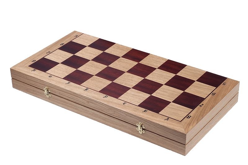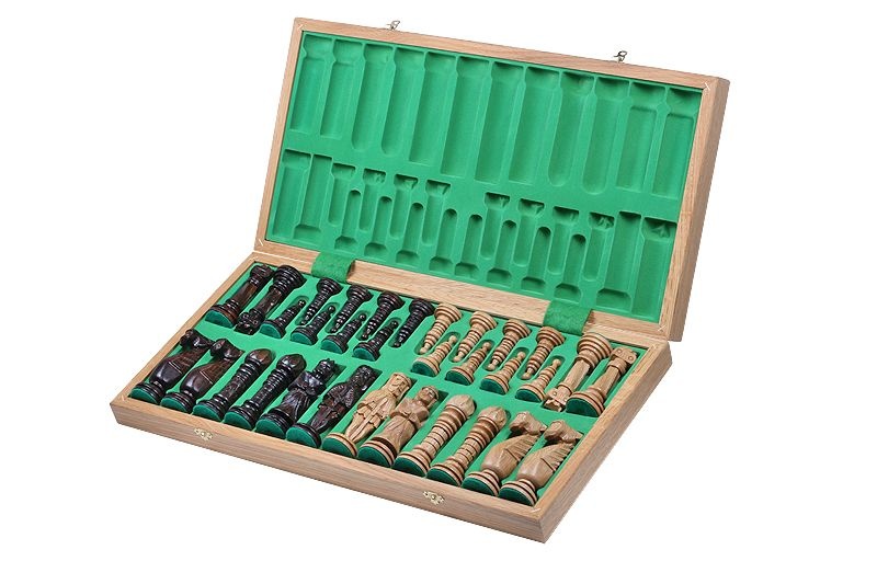 Schach Eiche Handgeschnitzt, König 15cm, Holz: Eiche, Buche, Birke & Mahagoni, aufgeklappt 65 x 65 x 3,5 cm, zusammengeklappt 65 x 32,5 x 7 cm, Gewicht circa 5kg