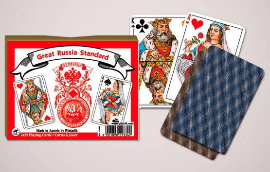 Doppelspiel von Piatnik beide Seiten der Karte gestaltet, 2 x 55 Spielkarten, 6 Joker, Kartengrösse 58 x 89 mm