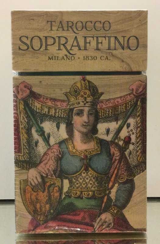 das Sopraffino Tarot aus Milan 19 Jahrhundert, von vielen als das Meisterwerk seiner Zeit bewertet, 78 Karten, 53 x 105 mm, Anleitung Englisch, ES, IT, FR, RUS